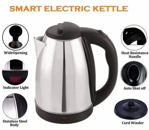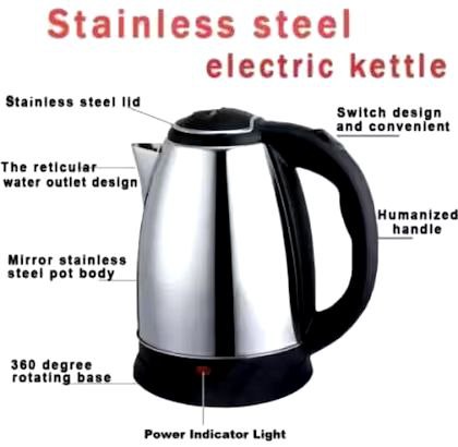 غلاية المياه الاستانلس 1.5 لتر بتصميم عصري وعملي، مثالية لتحضير المشروبات الساخنة بسرعة وكفاءة. تأتي مع ضمان سنتين وتوفر قطع غيار وصيانة.